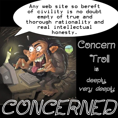 I’ve posted a number of comments to left-wing and feminist blogs over the years that, given a bit of an unkind reading, might sound a fair bit like the above(though I hope less presumptuous and arrogant). I was not “concern trolling”.