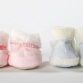 Image description: a photograph of some stenciled graffiti art on a rendered brick wall. It shows two identical baby faces side by side…