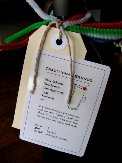 And here’s another tip. Pip Lincolne said ditch the bottle gift bag if you’re giving a bottle of wine to someone this year. Those gift bags are hideous, just decorate the bottle a bit instead. I went with pipe cleaners, and then I would have liked to staple the cocktail recipe card on to the gift tag but my stupid stapler had no staples so it’s glued on instead. But let the record show that I’m a massive fan of staples in craft.