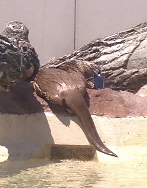 Someone taking a photo of the otters apparently dropped their iPhone in the exhibit. The phone, equipped with an OtterBox case, was picked up by the animal. Zoo-goers watch as the otter rips apart the OtterBox case, dropping the phone into the water. Witnesses say the otter would retrieve the phone, chew on it, and drop it back into the water several times.